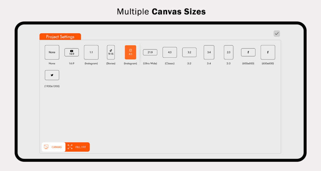 Step 2:- Click on the canvas icon and choose the perfect canvas for your video creation. You can easily select a canvas size tailored to various social media platform